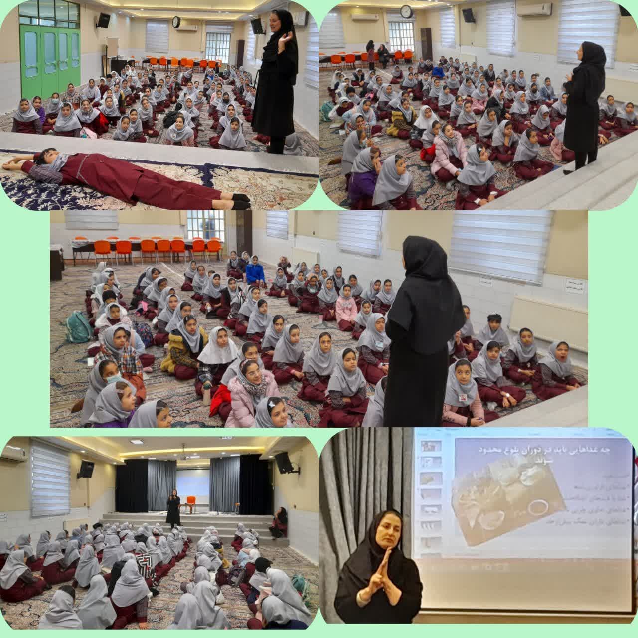 🌼🌼🌼حضور کادر محترم درمانگاه اکبری در آموزشگاه وصحبت با دانش آموزان پایه ی پنجم دررابطه با بلوغ وتغذیه ی سالم وآموزش حرکات ورزشی مناسب جهت افزایش قدو