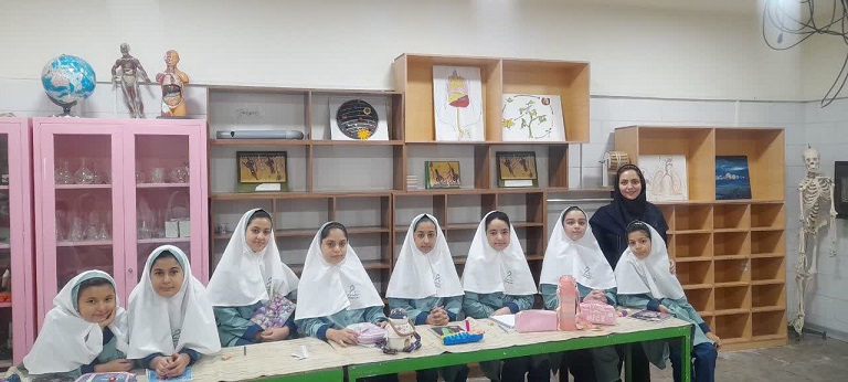 حضور دانش آموزان در آزمایشگاه با حضور مربی محترم سرکار خانم موذن وانجام آزمایش فرفره