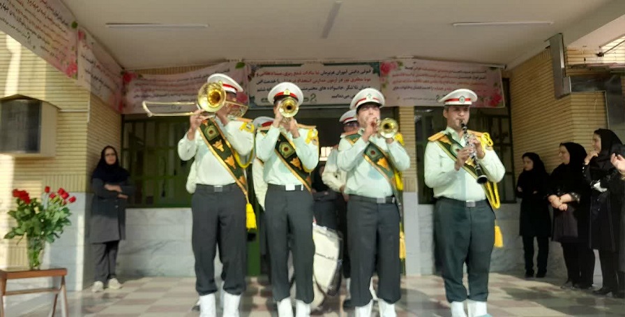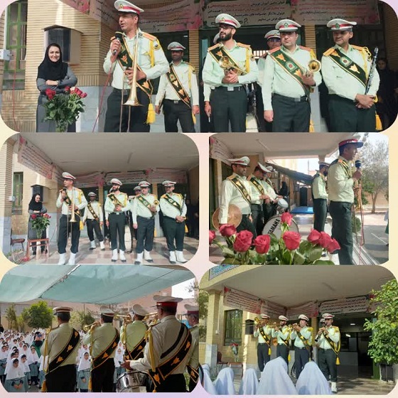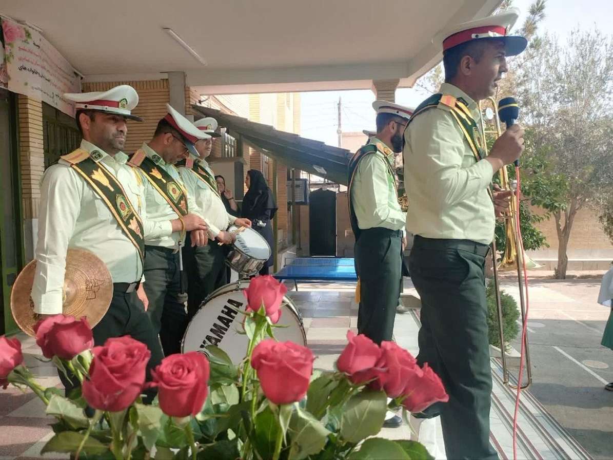 حضور مامورین زحمتکش وفداکار نیروی انتظامی در آموزشگاه واجرای مارش نظامی وآهنگ های شادوخاطره انگیز برای دانش آموزان واهداگل به ایشان جهت تقدیروتشکر . دوشنبه ۲۱ مهرماه