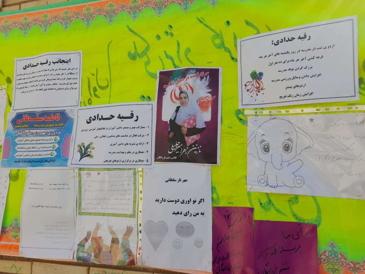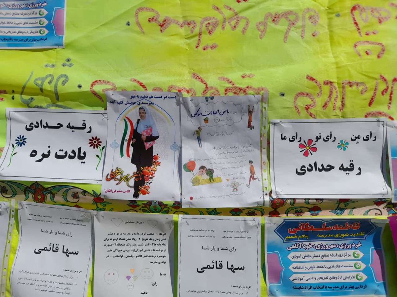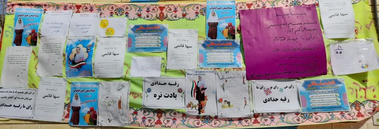 🌼🌼🌼تبلیغات شورای دانش آموزی.🌼🌼🌼 تصاویری از تبلیغات انتخاباتی دانش آموزان که با کمک اولیای خود، تبلیغات بسیار جالب و جذابی را در مدرسه با هدف انتخاب شدن در شورای دانش آموزی به راه انداخته اند