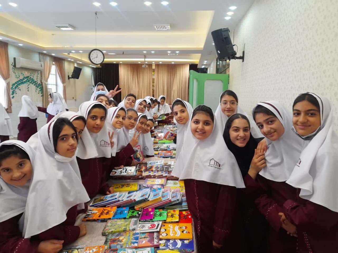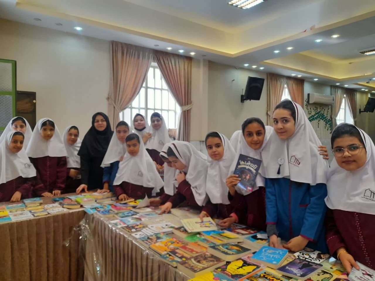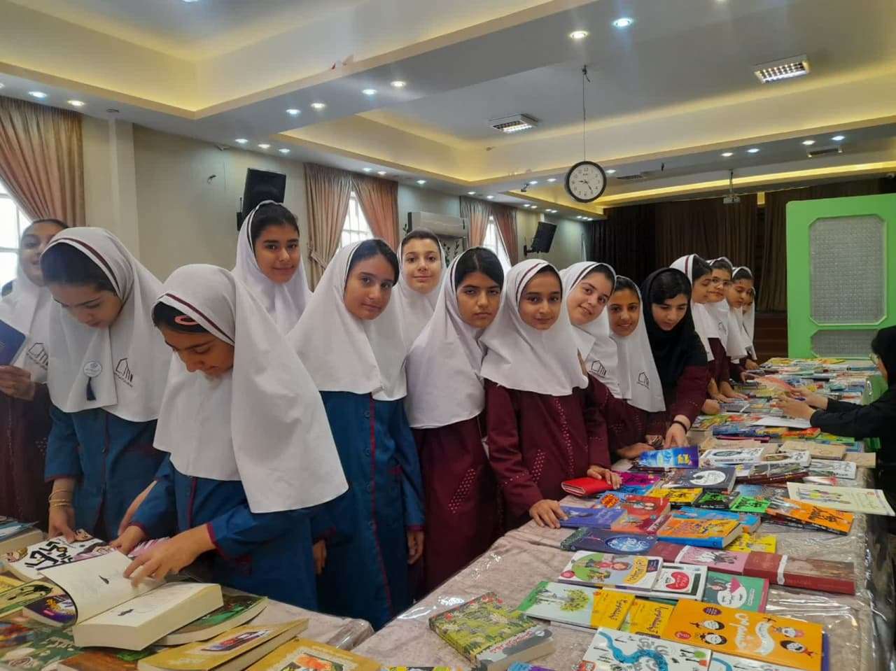 بازدید دانش آموزان از نمایشگاه کتاب به مناسیت هفته ی کتاب وکتابخوانی در سالن نمازخانه آموزشگاه