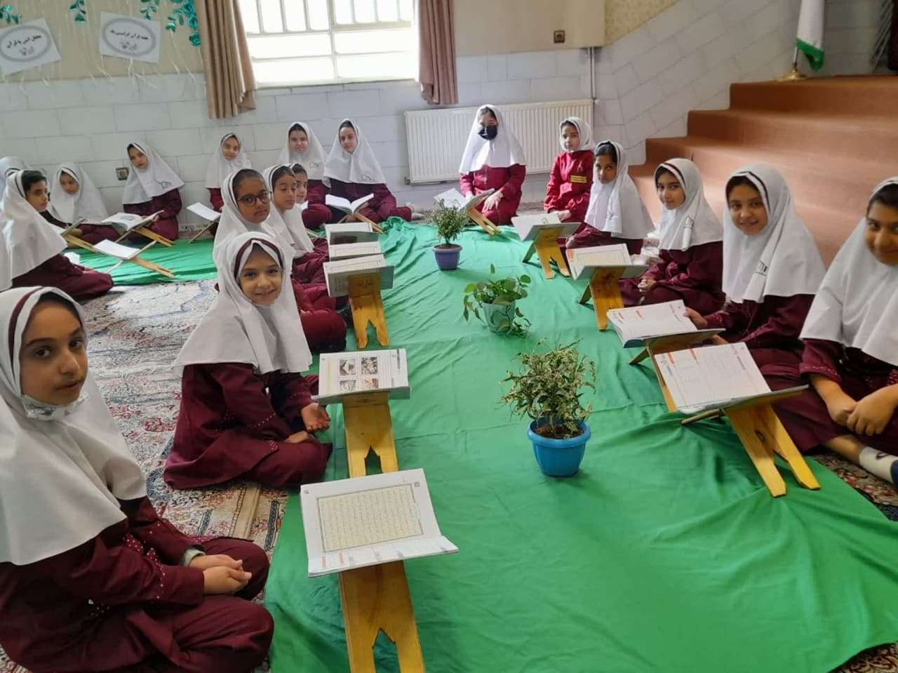 محفل انس با قرآن 🌼🌼🌼حضور دانش آموزان پایه ی پنجم شادی درمحفل انس با قرآن به مناسبت هفته ی قرآن وعترت در نمازخانه ی آموزشگاه 🌼🌼🌼🌼